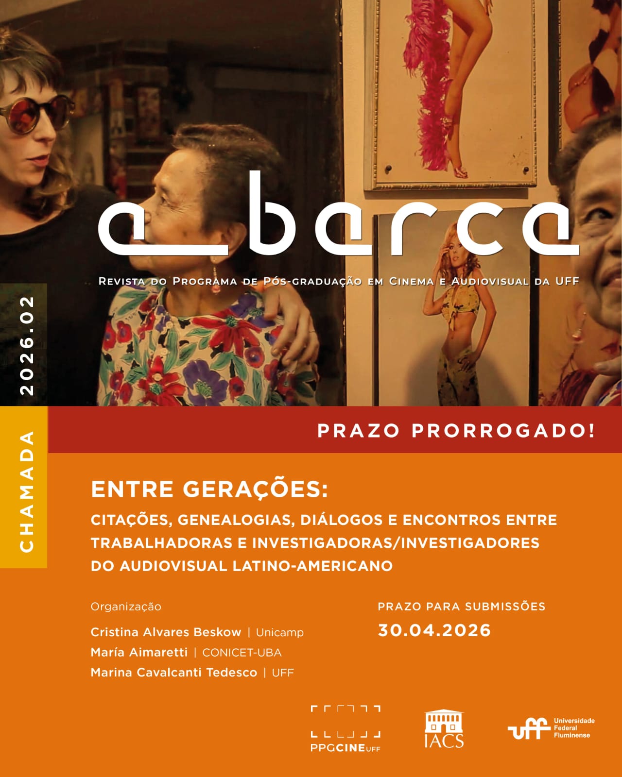 La Revista Académica multidisciplinar sobre cine y audiovisual A barca, del Programa de Pós-Graduação en Cinema y Audiovisual de la Universidad Federal Fluminense, abre la convocatoria de artículos para su próxima dossier especial a publicarse en el primer semestre del 2026, coordinado por Cristina Alvares Beskow (UNICAMP), María Aimaretti (UBA) y Marina Cavalcanti Tedesco (UFF).