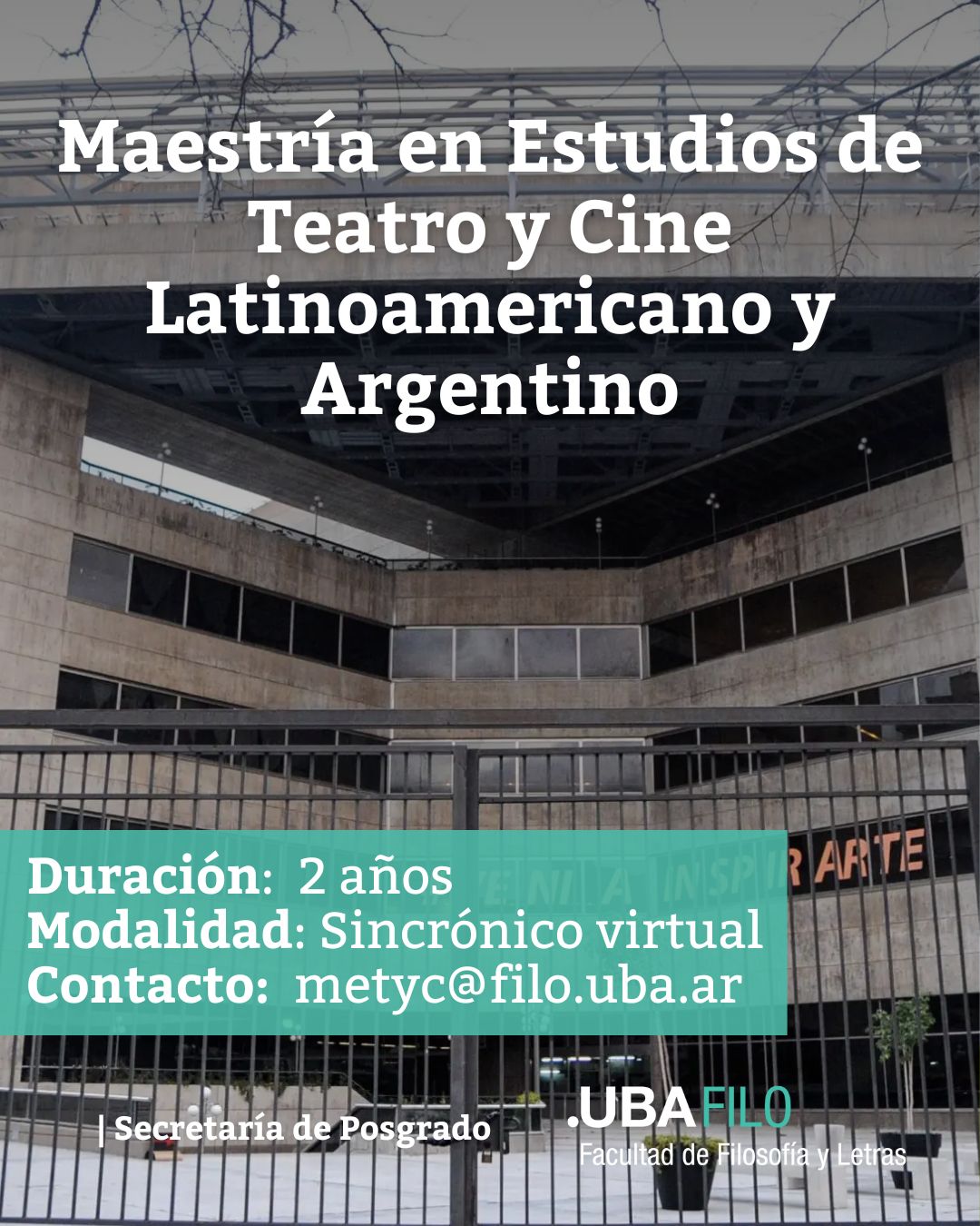 Más información en: Maestría en Estudios de Teatro y Cine Latinoamericano y Argentino | Secretaría de Posgrado – FFyL